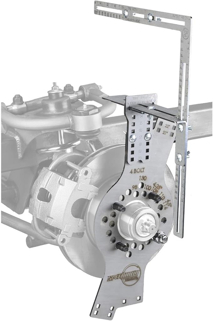 Speedway Motors WheelWise™ 4-Lug Wheel Fitment Tool with Tire Size Attachment, Simulates 14-22 Inch Rim Diameter, 8-14 Inch Tire Width, 2.5-11.5 Inch Sidewall, Laser Cut Steel