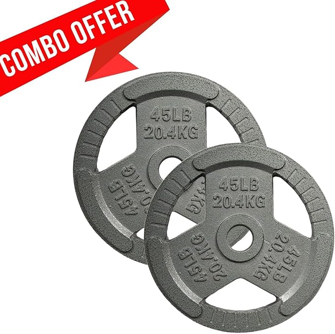 - EASY TO HANDLE: The tri-grip design of Olympic weight plates offers multiple gripping points around the edges, enhancing handling and lifting during exercises for improved stability and control