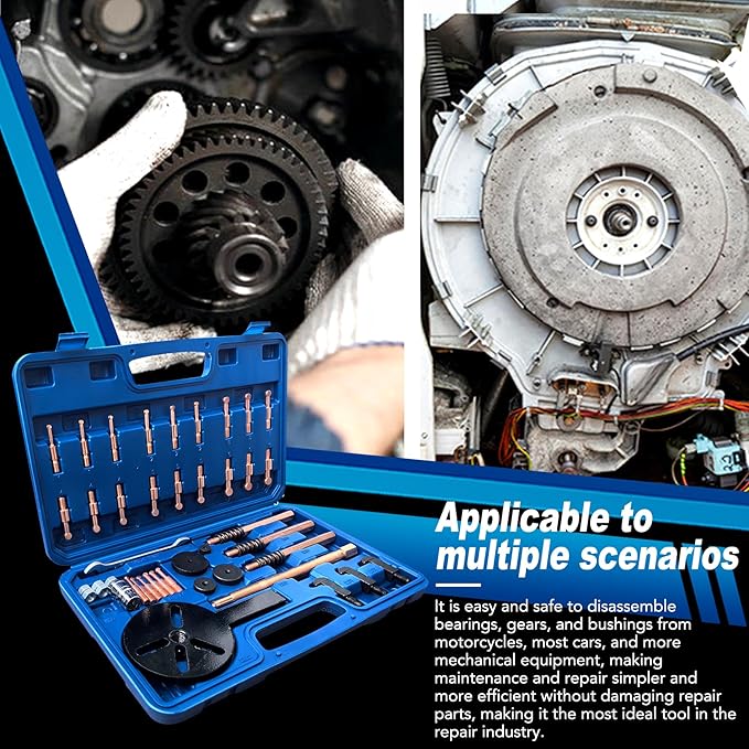 - 【BEARING REMOVAL MAGIC TOOL】 HQSSWUCH bearing removal tool enabling amateur mechanics and professional repairers can easily and safely remove bearing, gear and bushes from motorcycles and most cars and more mechanical equipment. Making maintenance and repair simpler and more efficient, without damaging the repair parts, is the ideal solution for the maintenance industry.