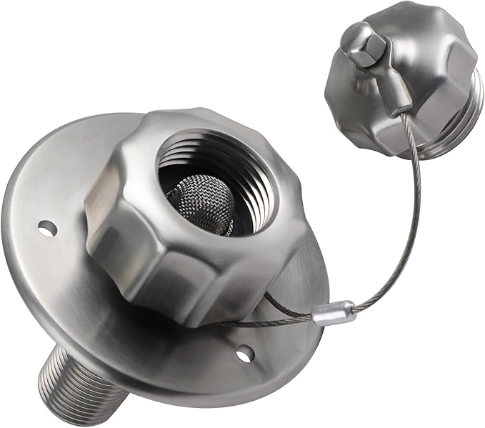 - RV inlet specifications: 3/4" GHT internal thread pipe outside the rv water inlet, 1/2" NPT external thread pipe inside the connection, flange thread diameter is 3", convenient for connection with RV or other equipment.