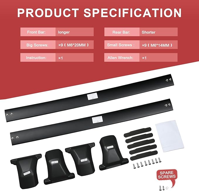 - 【Easy to Install on Vehicle】 Come with necessary installation tools, and easy to assemble and disassemble in a few minutes. Labeled front and back so no guessing on which one goes where. The width of this crossbar can be adjusted.