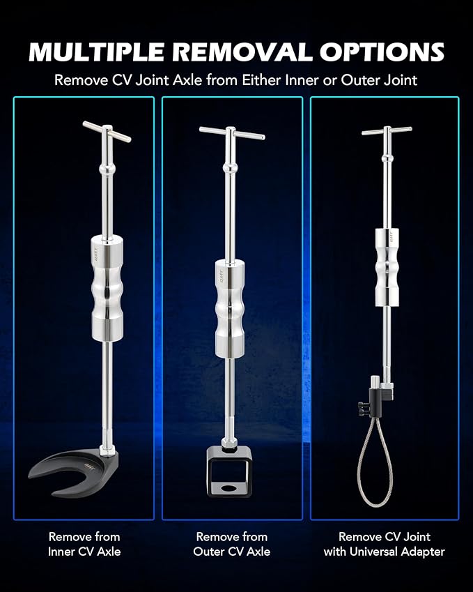 - Quick & Easy Operation: Simply attach the appropriate adapter to the slide hammer, then hook it around the inner CV joint housing. Slide the hammer back and forth, and watch as the inner CV joint effortlessly comes off.