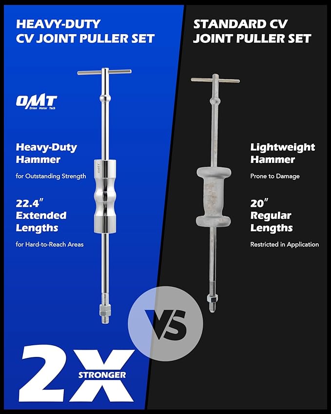 - Heavy-Duty Slide Hammer: The 22.4" slide hammer ensures a powerful and even pull for easy axle assembly removal. Its smooth threading accommodates our 5/8"-18 adapters for versatile use with different makes and models.