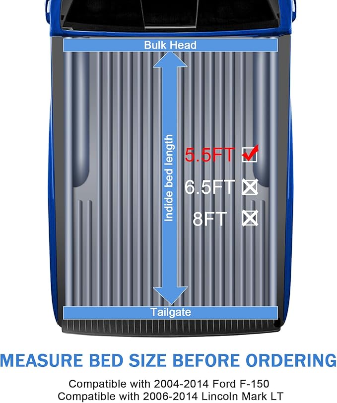 - [VEHICLE MODEL FIT] Compatible with 2004-2014 Ford F-150 5.5FT Bed, compatible with 2006-2014 Lincoln Mark LT 5.5FT Bed. Please verify your bed length before ordering.
