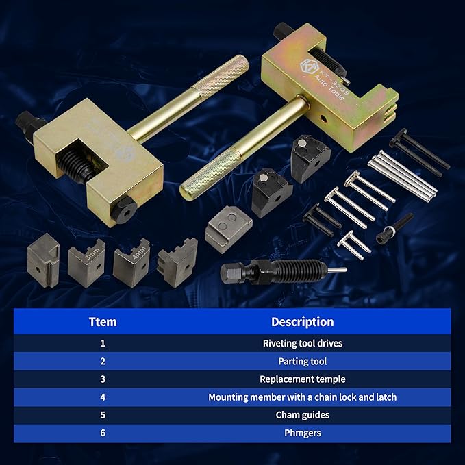 - 【Lasting to Use】Timing chain separating and riveting tool kit is made of high-quality steel with high hardness and durability, and the tool surface has an anti-oxidation coating to prevent rust and extend service life. It has good rigidity and durability not easy to break.