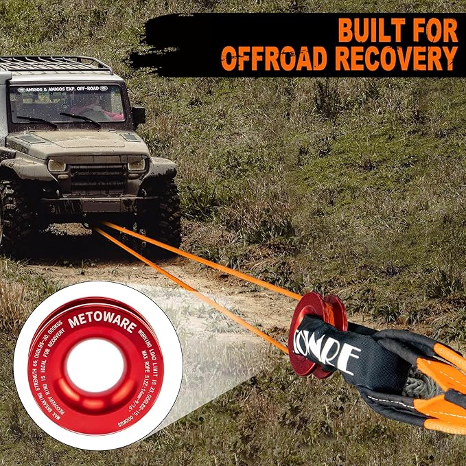- Snatch Ring: The breaking strength of Metoware snatch recovery ring is approximately 66,000Lbs, which is stronger and sturdy. Suitable for 1/2" or 7/16" soft shackle,and diameters less than 5/8"(16mm) synthetic winch rope. Do not use with steel cables.