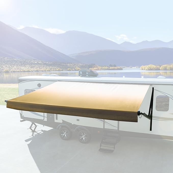- 💪 Durable - Our RV Awning Fabric is made with 3-ply fabric and 16oz heavy duty vinyl for superior strength and long-lasting durability. Heat welded seams and stress points make your awning reliable even in the toughest climates.