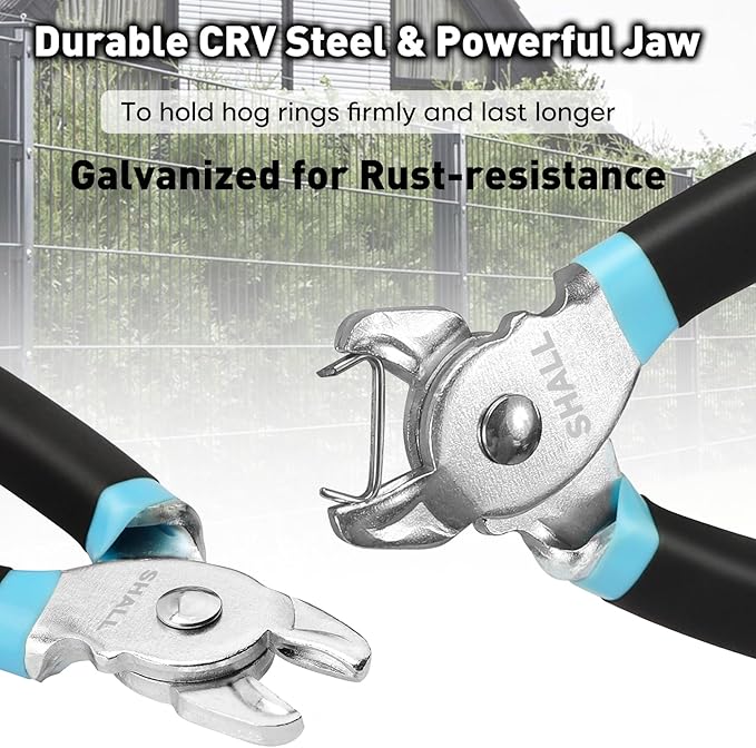 - Durable CRV Steel Jaw: The jaws of hog ring pliers are made of sturdy CRV steel with zinc coated which makes it extremely durable, long-lasting and rust & corrosion resistant