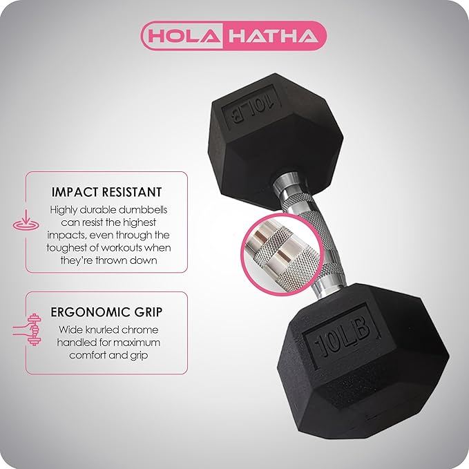HolaHatha Hexagonal Dumbbell Free Hand Weight Set w/Rack