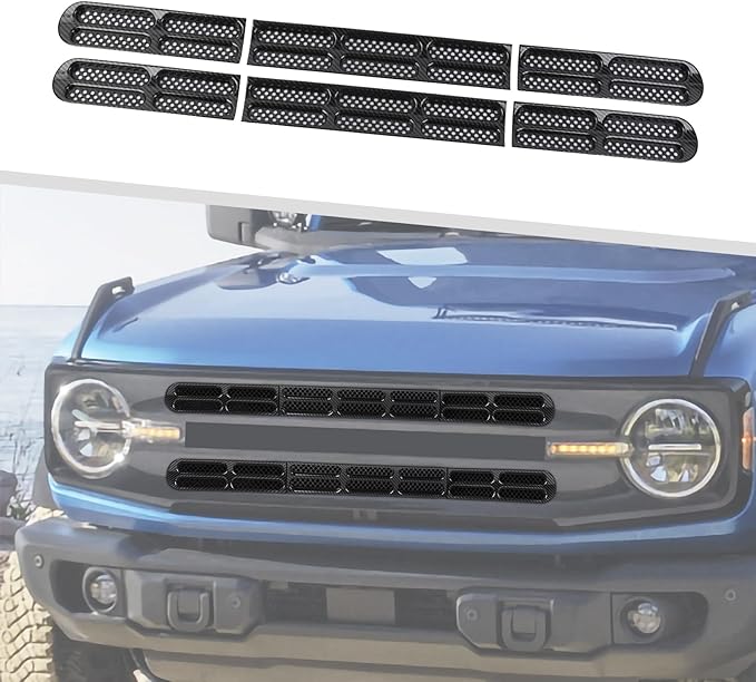 Jimen for Bronco Grille Inserts, 6 Pack Front Mesh Grill Cover Guard Exterior Trim Accessories Compatible with Ford Bronco 2021-2024 (Carbon Fiber)