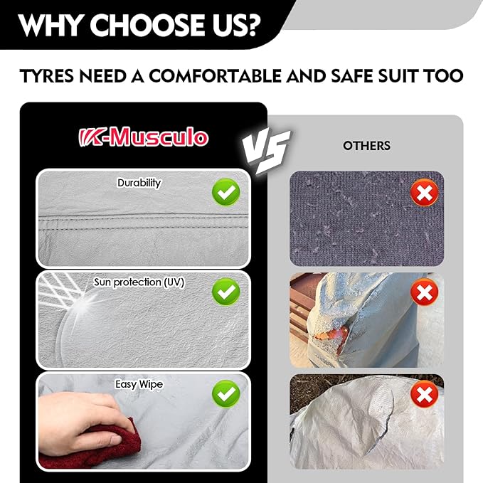 - [Order with grace]: K-Musculo's swift return or exchange policy enables you to purchase without hesitation 100% satisfaction guaranteed. Our care doesn't end when your product arrives at your door. If you have any question with our tire cover, please message us for fast service!