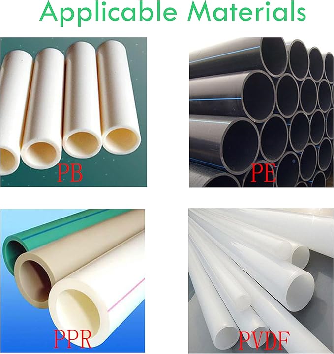 - 【Welding Size】The outer diameter of suitable pipes is 90mm(3.54''),110mm(4.33''),125(4.92'')140(5.51''),160mm(6.30''),180(7.09''),200mm(7.87''),225mm(8.86''),250mm(9.84''). The welder uses carbon steel nuts which is strong, solid and durable.