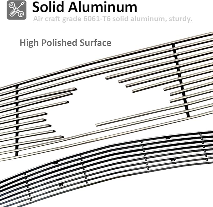 - 【SOLID ALUMINUM】Front upper bumper billet grille insert is made of air craft grade solid aluminum and customized to fit the front bumper of your vehicle. All necessary hardware and instruction are included. Grille insert only, logo or emblem, frame or shell is NOT included.