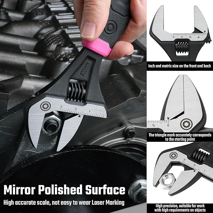 - Wide Jaw Opening: Max jaw opening up to 1-1/2 inch (38 mm) for 8-Inch wrench. Greater jaw capacity, allows 55% wider opening than traditional adjustable wrenches, supports larger nuts, bolts, and pipes