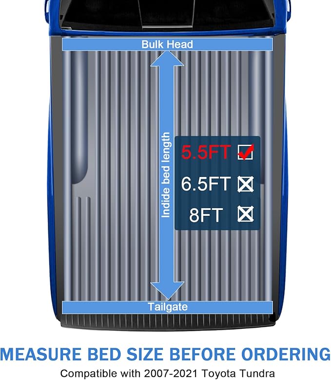 - [VEHICLE MODEL FIT] Compatible with 2007-2021 Toyota Tundra 5.5FT Bed. Please verify your bed length before ordering.