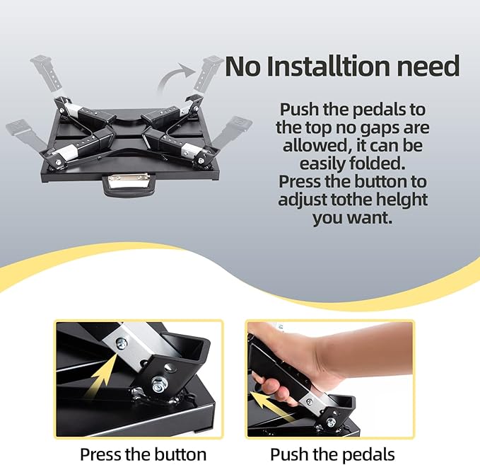 - 4 Level Adjustable Height: Experience the ultimate convenience with our RV step featuring an aluminum folding platform measuring 16.5" x 12.2". Engineered with four precise height settings 7.7", 8.2", 8.7", and 9.3", it effortlessly adapts to various height preferences, ensuring optimal comfort in any situation