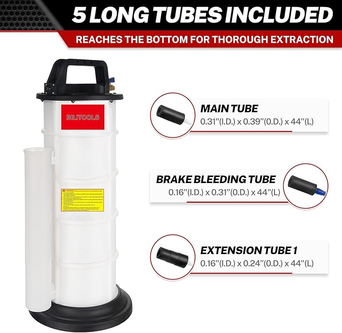 - Extra-Large 9L Capacity: Boasting a larger 9L tank than competitors, this oil extractor reduces the need for frequent emptying, speeding up your maintenance tasks. The thick, translucent design allows you to easily monitor fluid levels, handling larger volumes with ease.