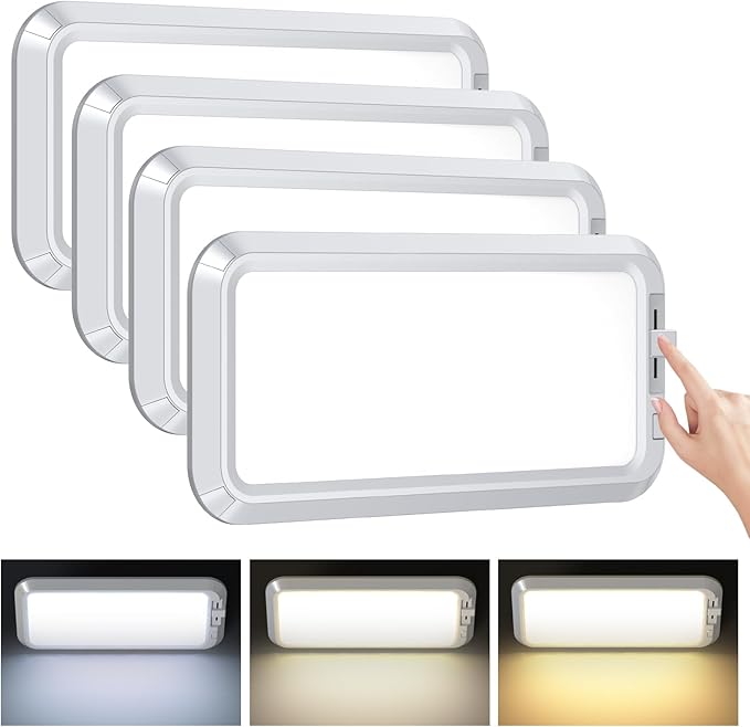 BlueFire 700LM Dimmable Sliding Brightness RV Ceiling Dome Lights, 7W DC10-30V Super Bright RV Interior LED Lights for RVs, Campers, Motorhomes, Trailers (3 Color Tem- 4PCS)
