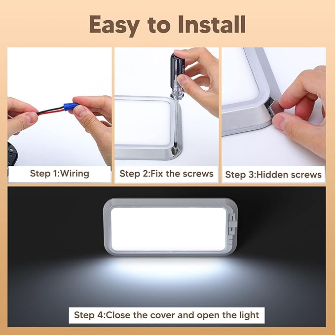 - 【EASY TO INSTALL】It comes with Wire Nut and Screw, screw-type wiring cap can help fast connection,and you just need to fixed the double dome light in any positions of your RVs with the screws.