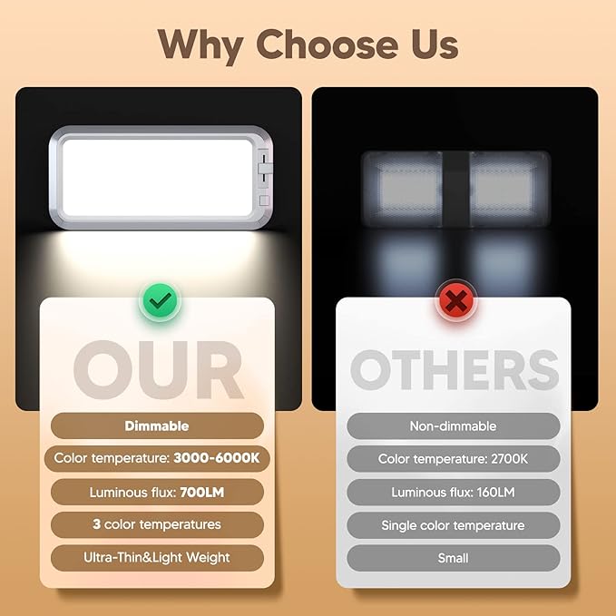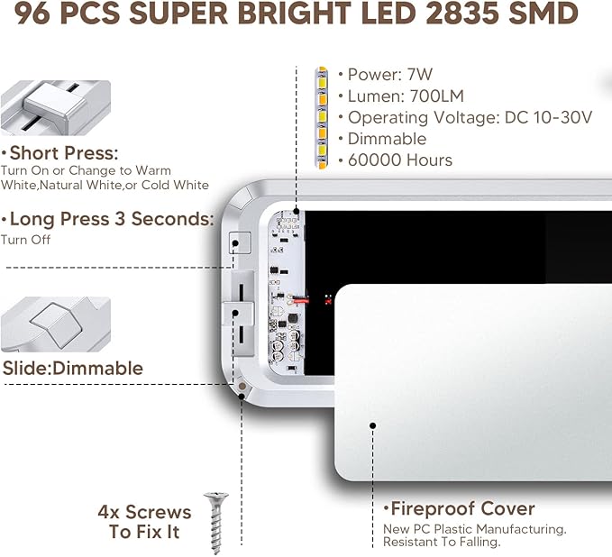 - 【BRIGHT & SOFT LIGHTING】 96pcs of Dimmable LED light chip beads, 3000-6000K white light simulates natural light,the lighting is soft and not dazzling, which makes your eyes comfortable and will not be hurt by the light.