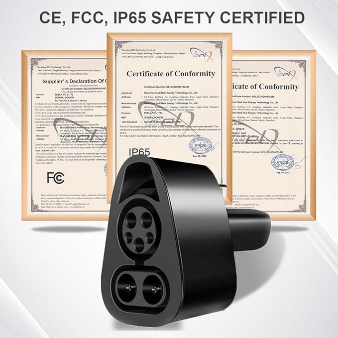 - Compact, Portable, and Weatherproof: The CCS1 to Tesla Adapter features a lightweight and compact design, making it easy to store in your glove compartment or trunk. Its IP65 certification ensures safe and reliable charging even in harsh weather conditions like rain, snow, or dust. Perfect for long trips or daily use!