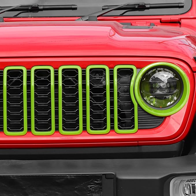 Jimen for 2024 Jeep Wrangler 4xe grill inserts, 9PCS Headlight Cover & Grille Insert Compatible with Jeep Wrangler JL JLU 2024+, NOT FIT JL Sport/Sport S (Green)