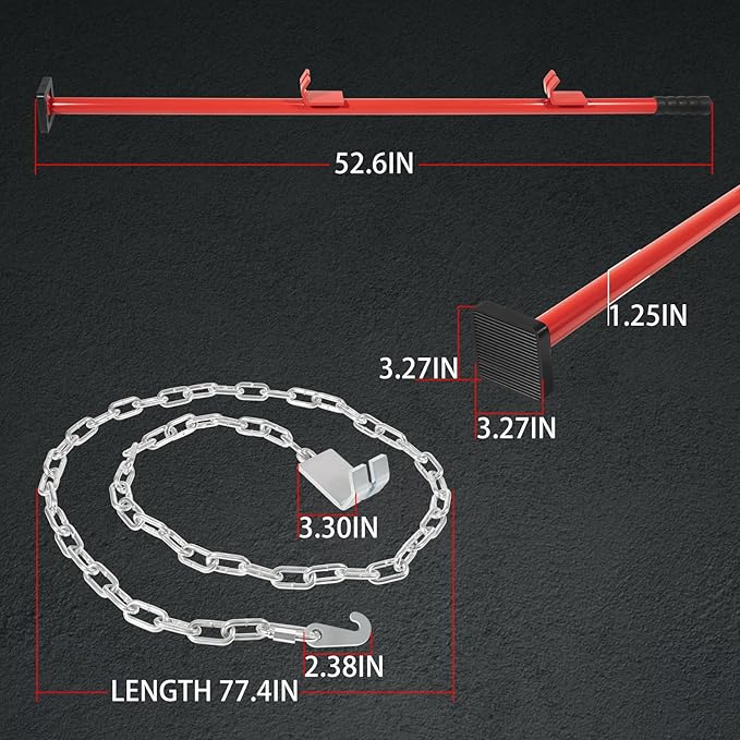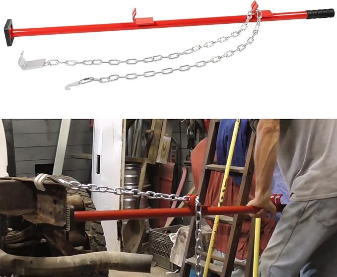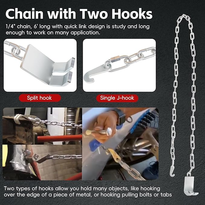 - Versatile Design--- This auto body tools come with heavy duty 1-1/4" diameter tubing with two welded hooks and 6' long 1/4” chain with hooks on both ends to provide flexibility and adaptability for various repair jobs like straightening bumper frames, aligning panels, or performing other auto body.