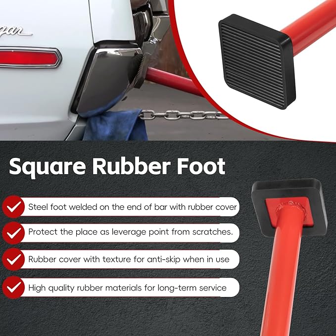 - Easy to Operate---Place rubber foot against solid leverage point. Simply hook the chain hook over the edge of a piece of metal, or pulling bolts or pulling taps, wrap the chain around the bar hook, then apply even pressure on the bar.