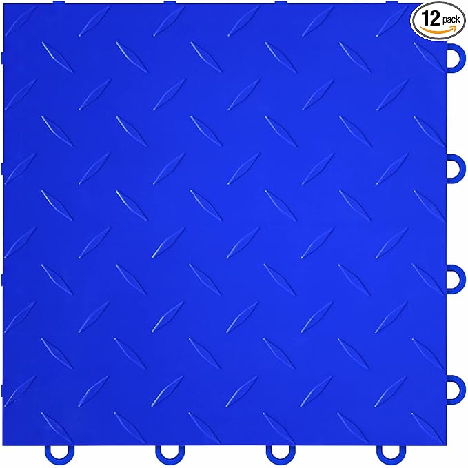 FlooringInc's Nitro 12"x12" Snap-Together Garage Flooring Tiles, Non-Slip Interlocking Plastic Garage Floor Mat, Garage Organization & Garage Storage, Diamond Pattern, Shelby Blue, 12 Tiles, 12 Sq/Ft