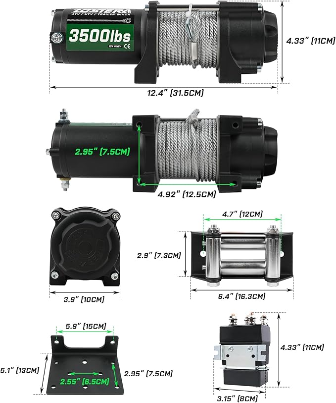 - 【THE SECOND POWER OF THE VEHICLE】 When your vehicle gets stuck in mud or other difficulties, the electric winch as the second power of the vehicle may be the only choice to get you out of trouble. This is a 12 volt DC severe duty winch, it's rated at a 3,500 pound single line pull .The motor on this is a heavy-duty 1.5 horsepower series wound motor, so it'll deliver superior torque output and fast line speed.