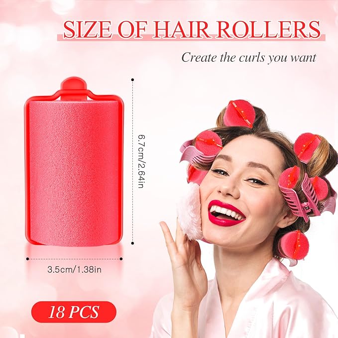 Geyoga 18 Pieces Sponge Hair Rollers Large Soft Foam Hair Styling Curlers Large Size Hairdressing Curlers for Women(1.4 x 2.6 Inches,Red)