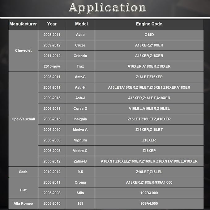 - WIDE APPLICATION: This alignment locking tool is compatible with a large range of engines including Chevrolet, Fiats and Alfa Romeo 2003 - 2012 16V 1.6 1.8 engine. Also fits Chevrolet Cruze, Orlando 1.4,1.6,1.8 and Fiat Croma, Alfa Romeo 159 with 939A4.000 engines.