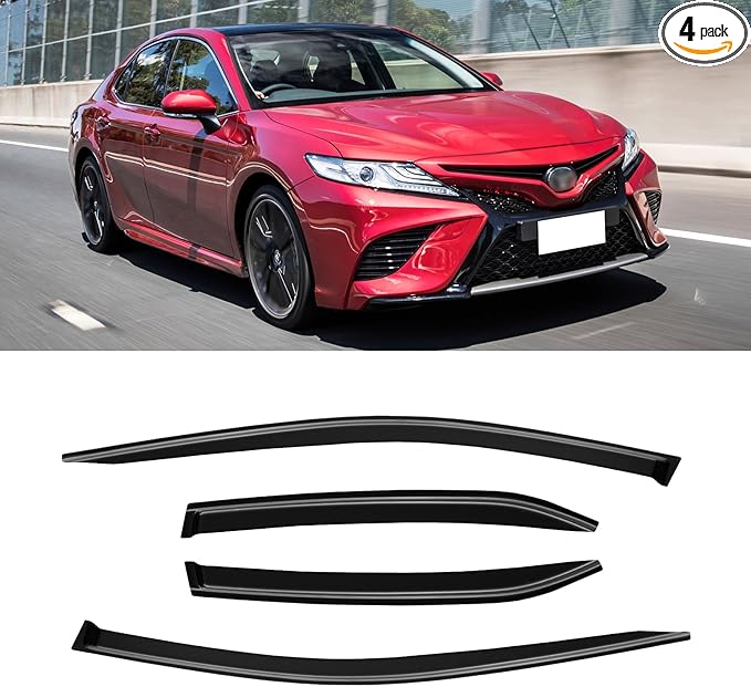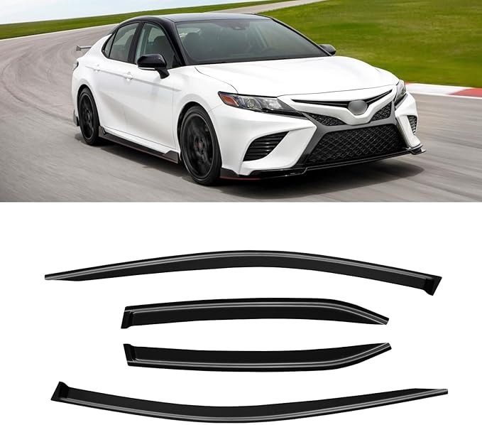 - 【VEHICLE FITMENT】 - AWVRG Out-channel/ Outside adhensive Extra Durable ventshade ventvisor compatible with Toyota Camry 2018-2024 XV70 for all Trims L LE SE XLE XSE Hybrid. Please check fitment details in Products Description before purchase.