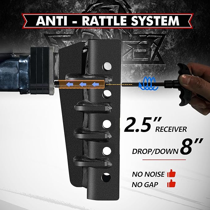 - Forged Construction: The forged hitch ball allows for higher towing capabilities, while 8-inch drop/rise hitch provides flexible adjustment. Pins hold the hitch ball in place and allow for quick system changes.