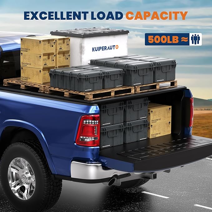 - [High Quality] Crafted from durable fiberglass and featuring a PP Honeycomb design, this tonneau cover offers exceptional heat dissipation, scratch resistance, and UV protection. It boasts a hardness rating of over 30HBa and can support over 350 pounds, ensuring long-lasting use. Its wear resistance is impressive, promising extended durability.