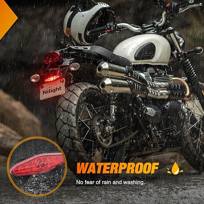 Nilight Motorcycle Tail Lights LED Brake Running Light with License Plate Bracket Dirt Bike Rear Lighting Compatible with Honda Yamaha Kawasaki Suzuki Chopper Turing Cruiser, Red