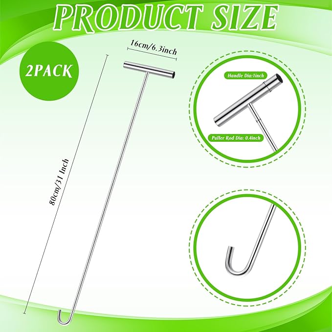 Zonon 2 Pack 31" 5th Wheel Pin Puller Solid Steel Chrome Plated Fifth Wheel Pin Puller Heavy Duty Portable Type Lifting Hooks for Pulling Storm Drain Manhole Covers, J Hook