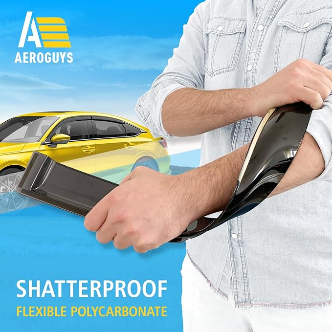 - Incredibly Durable AEROGUYS Auto Window Deflectors – They are made with strong and tough polycarbonate which is clear and scratch-resistant. They also provide UV protection making your ride more comfortable under all weather conditions.