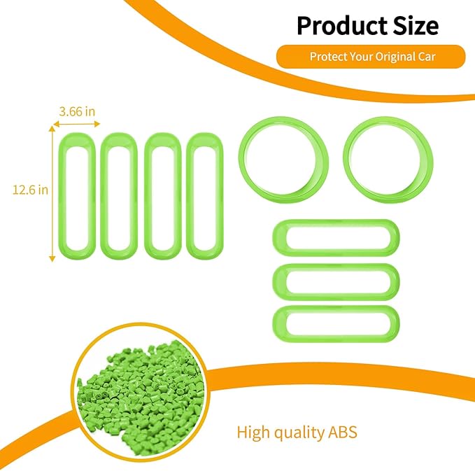 Hoolcar Front Grille Insert Cover & Headlight Bezel Cover Trim Fit for Jeep Wrangler JK JKU 2007-2017, Exterior Accessories, Light Green