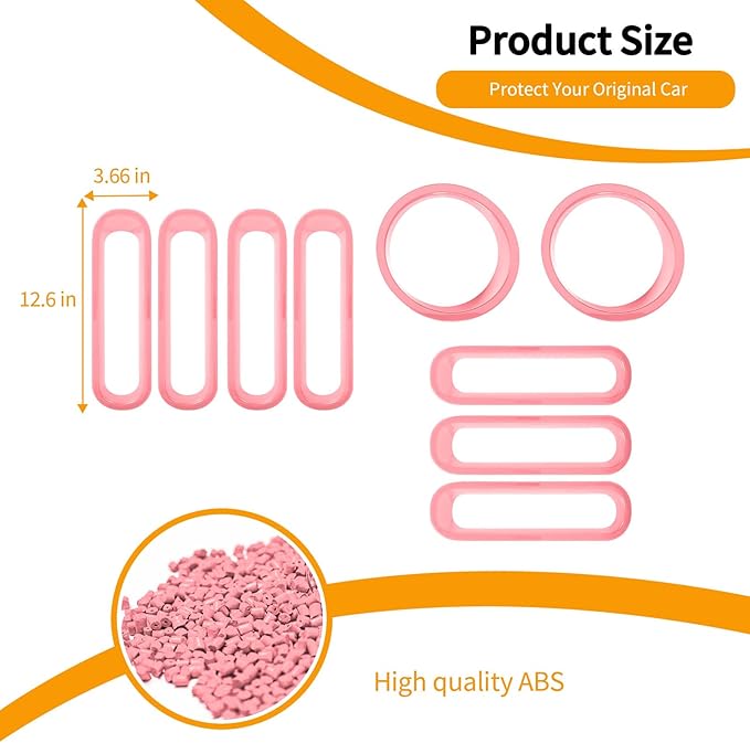 Hoolcar Front Grille Insert Cover & Headlight Bezel Cover Trim Fit for Jeep Wrangler JK JKU 2007-2017, Exterior Accessories, Pink
