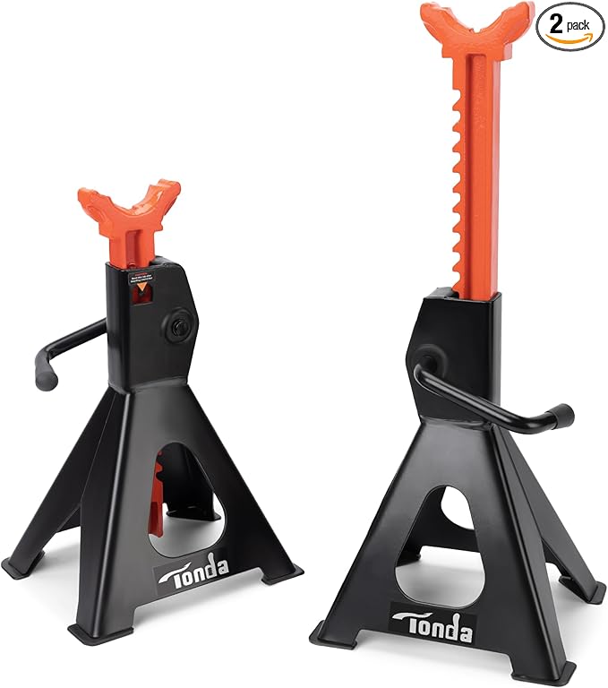 - SELF-LOCKING RATCHETING: Our jack stands feature a self-locking ratcheting mechanism that allows you to adjust the height to your desired level. The sawtooth design ensures the stand locks in place automatically when raised