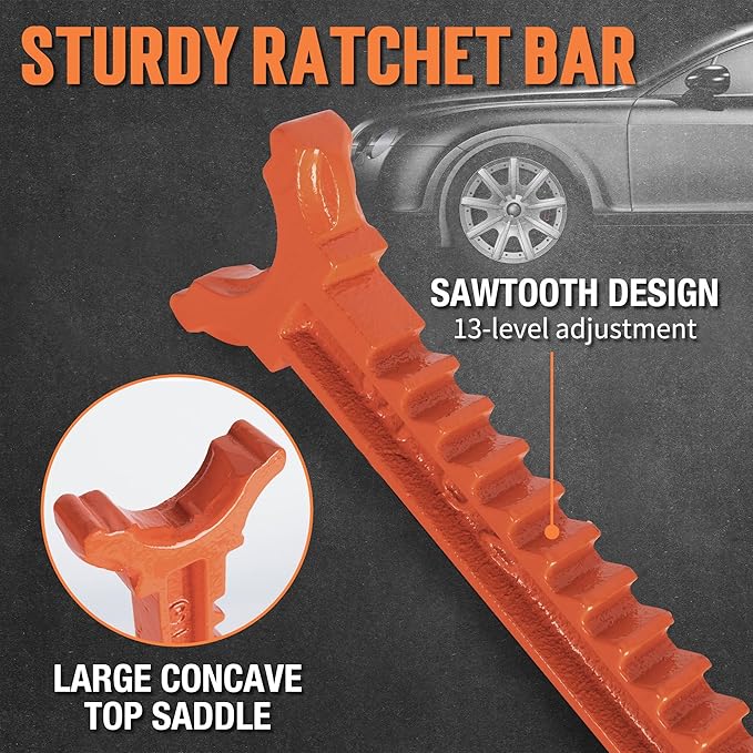 - BUILD TO LAST: Our jack stands are constructed of strong carbon steel with a welded frame design for durability. The ratchet bar is made of cast iron with a rust-proof coating