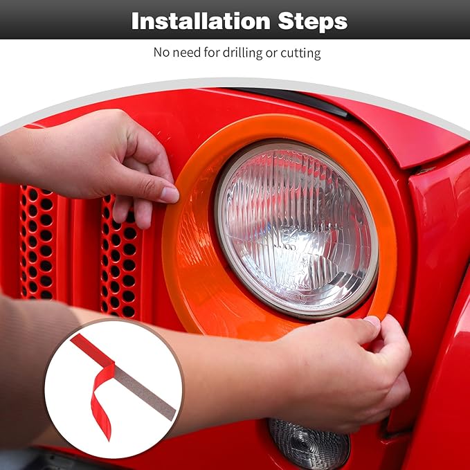 CheroCar for JK Mesh Grille Grill Insert & Headlight Cover Trim Exterior Accessories for Jeep Wrangler JK 2007-2017,Orange…