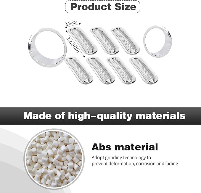 - ˂ Material ˃ Grill Insert & Headlight Turn Light Cover Accessories are made of durable ABS Plastic,light-weight and durability, impact resistance and anti-corrosion, high and low temperature resistance.