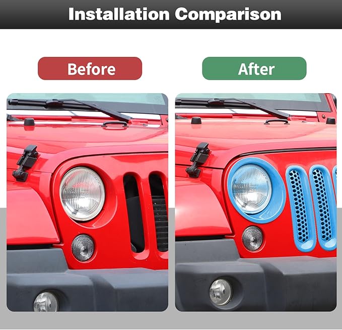 - ˂Application ˃ CheroCar Grill Insert & Headlight Turn Light Cover Compatible with Jeep Wrangler JK 2007-2018
