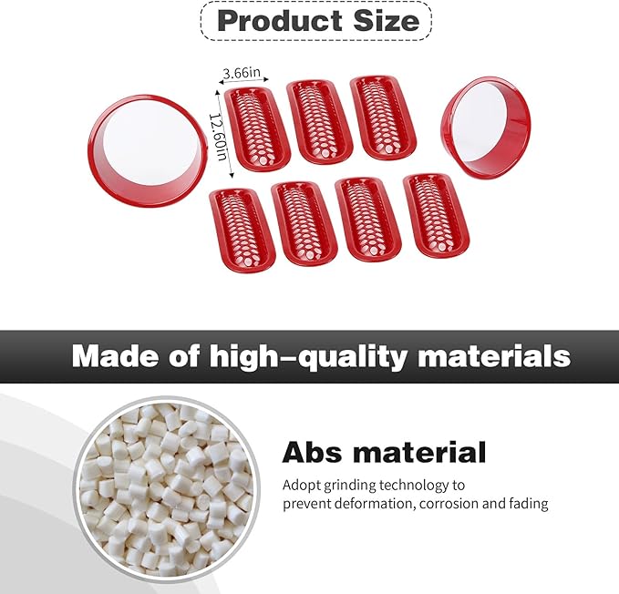 - ˂ Material ˃ Grill Insert & Headlight Turn Light Cover Accessories are made of durable ABS Plastic,light-weight and durability, impact resistance and anti-corrosion, high and low temperature resistance.