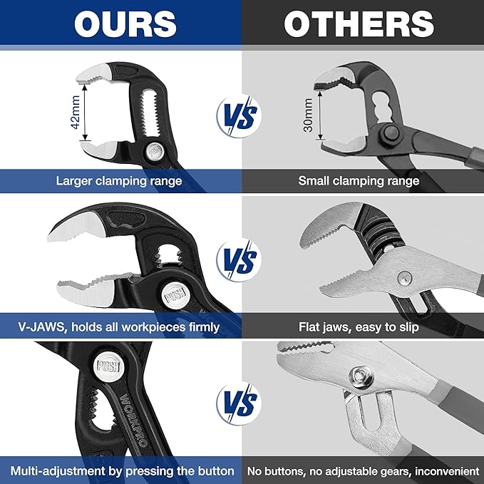 - Upgraded Wide Opening: The pliers are ideal for a wide range of tasks due to their superior 42mm wide clamping range, suitable for water pipe installation, watertap replacement, mechanic work, repair and other diverse applications