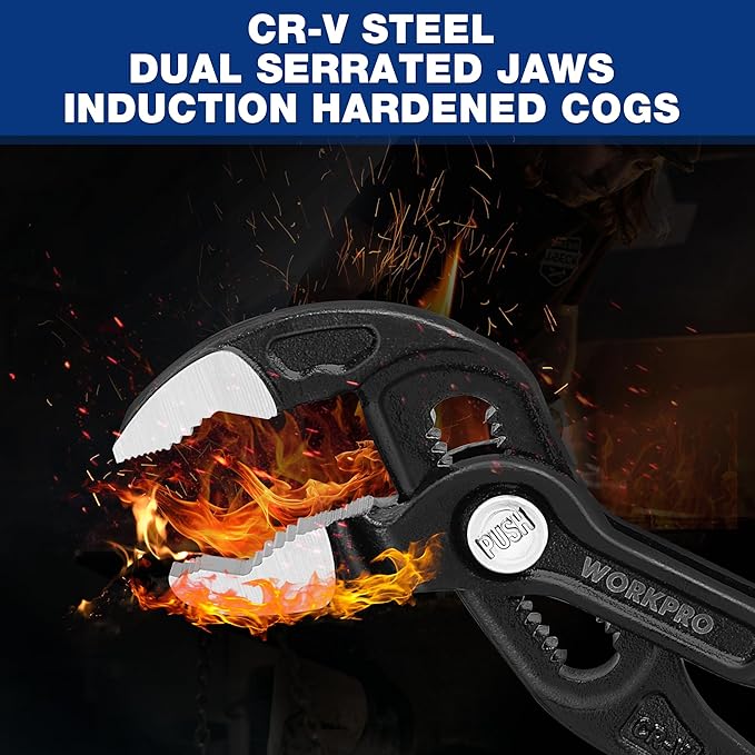 - Premium 50CR-V Steel: WORKPRO pliers, crafted from premium chrome vanadium steel, offer superior durability, rust resistance and long-lasting performance compared to carbon steel, making them an excellent choice for professional repairs. HRC 53-55