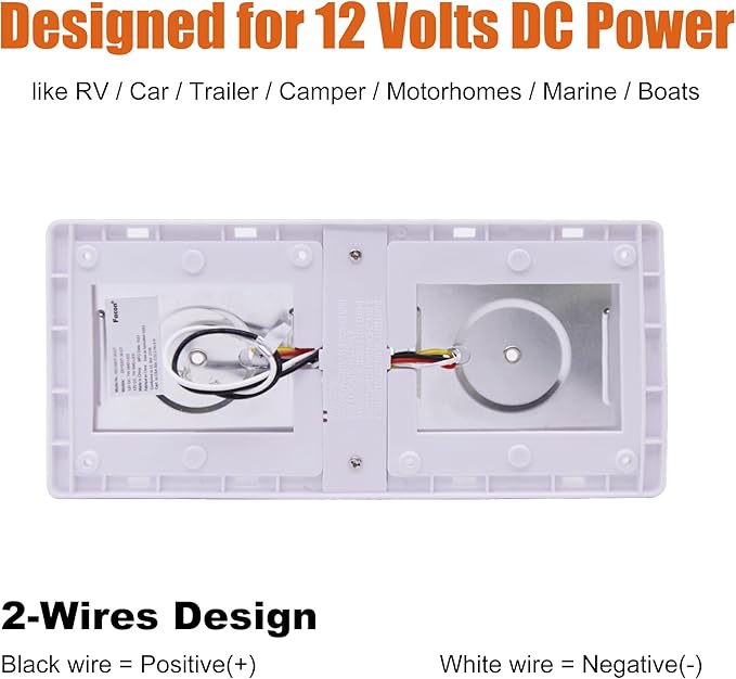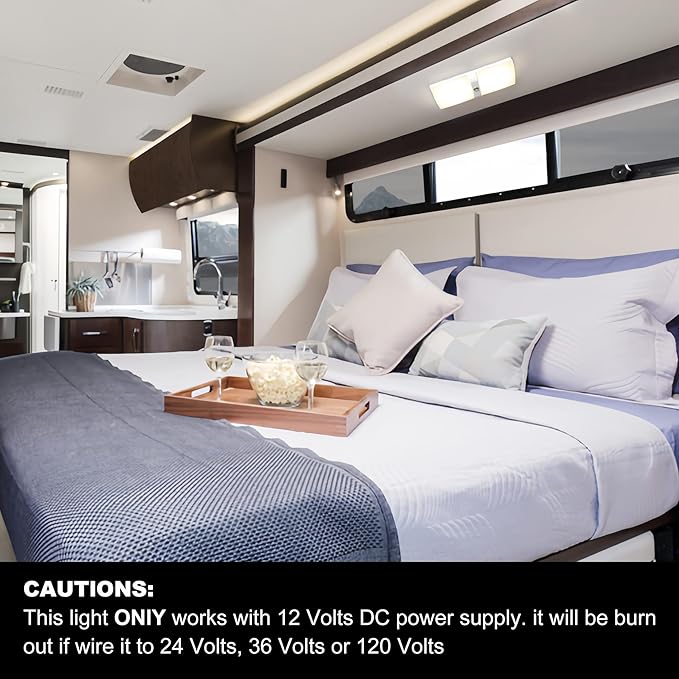 - 12V LED RV Surface Mount Lamp: The Facon LED RV interior light is designed for 12V DC power systems found in RVs, motorhomes, campers, trailers, and boats. It features a square LED ceiling dome light with a modern and sleek design.
