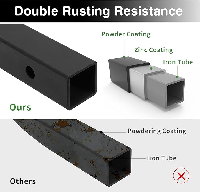 - Sturdy Construction: Built with heavy-duty square galvanized tube steel, this cargo carrier can securely transport up to 500 lbs of cargo, gear, or equipment. The galvanized tube with black powder-coated has greater durability than others protecting it from rust and weather elements.